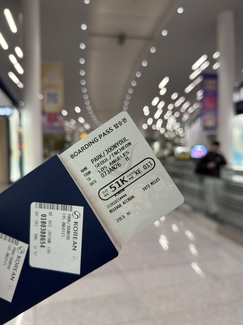 어쩌다보니까 학교에서 미국을 보내주는 프로그램에 합격을 했고, 종강한지 2주 조금 넘은 시점인 오늘 1월 7일에 드디어 미국행 비행기를 타게 됐다!